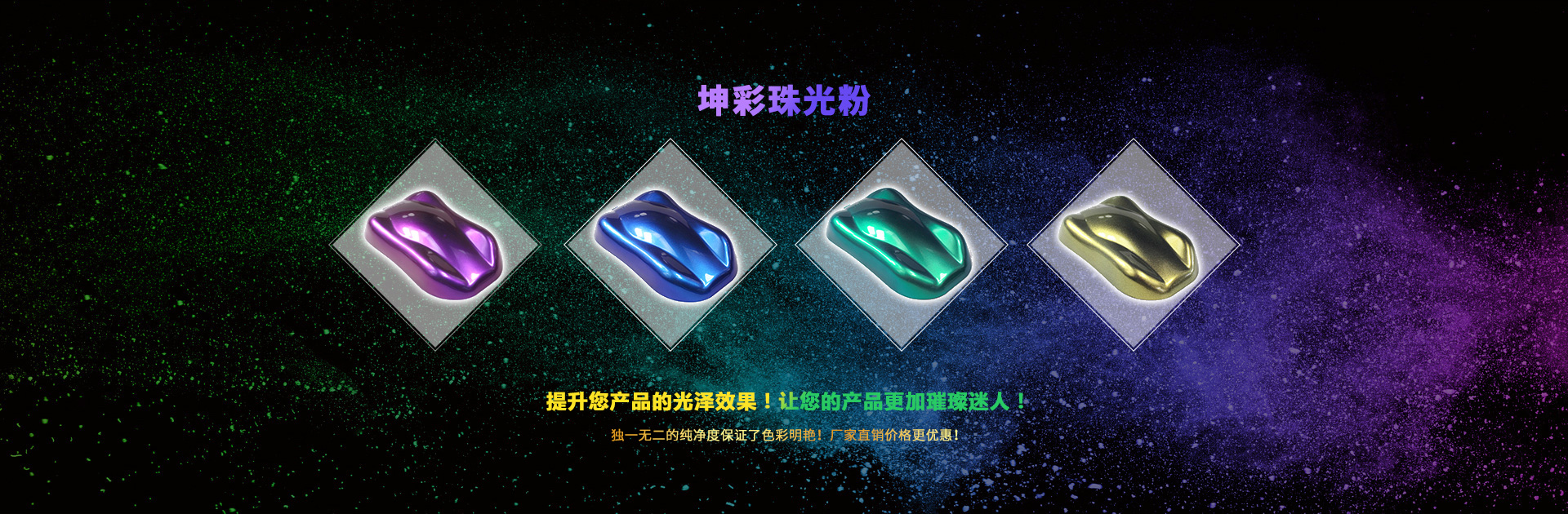 公司精選國際精品顏料,匯集全球品牌。品種多、色彩廣、規格齊、貨源足。主要產品有金蔥粉、珠光顏料、熒光顏料、鋁銀漿、珠光漿、金粉、銀粉、反光粉、夜光粉、銅金粉、色精、有機顏料等上千種品種。……